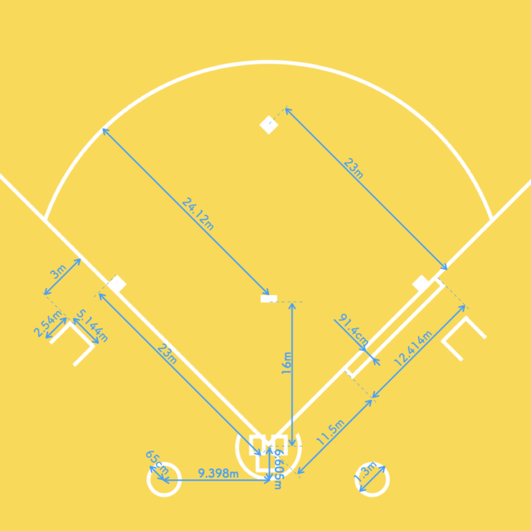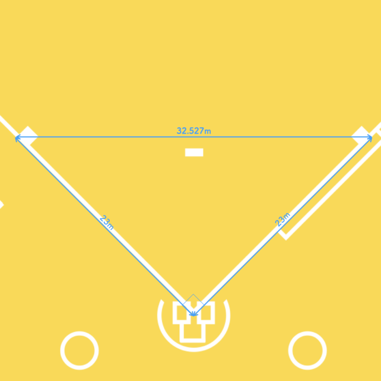 これらの基準を満たす場所にホームベースを置けば、その他のベース配置やライン引きがスムーズです。