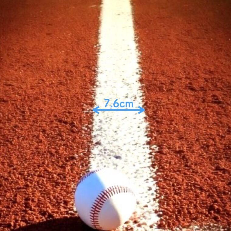 グラウンドに描くラインの幅は公認野球規則によって「3インチ(約7.6cm)」と定められています。ファールライン・バッターボックス・キャッチャーボックスなど、すべてのラインに適用される“共通ルール”です。