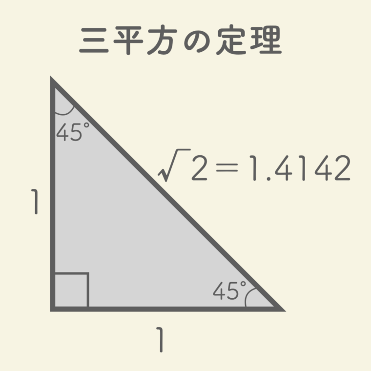 ただ描くだけでは90°を出すのは難しいですが、メジャーで三辺の距離を測るだけで正確に作れるコツがあります。以下の組み合わせを覚えておけば、90°が再現できるので、覚えておいて損はありません。