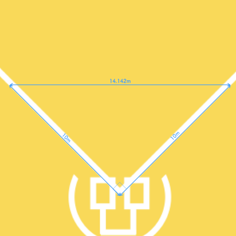 手法1】一塁側10m・三塁側10m・対角線14.142mになるようファールラインを調整する