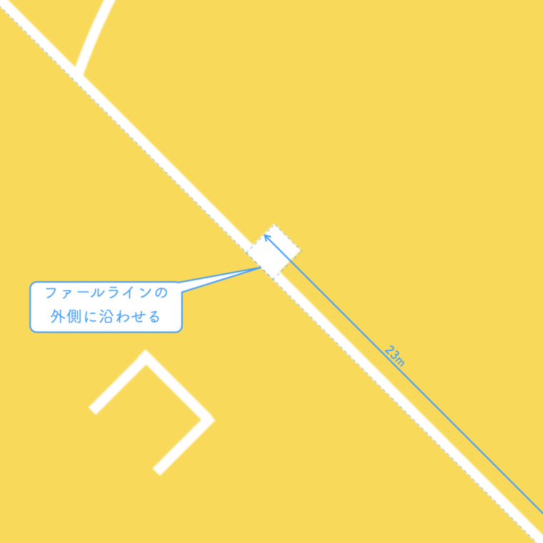 次の1〜3のステップを踏めば、ファールラインが直角(90°)になります。