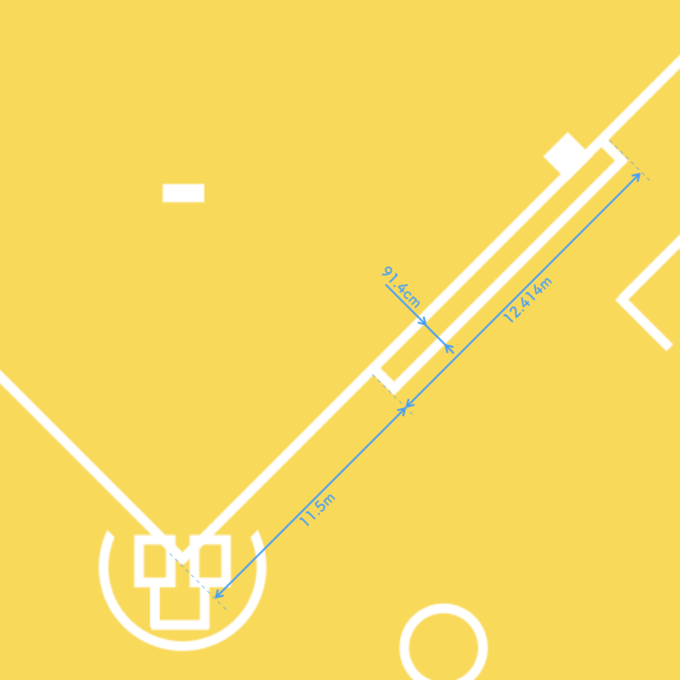 スリーフットライン:一塁線から91.4cm外側/長さ12.414m