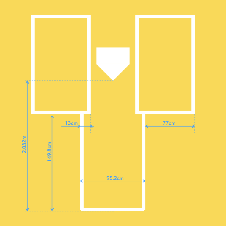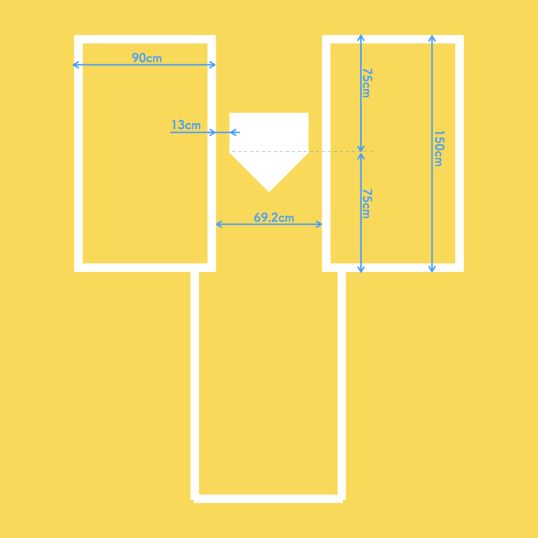 ホームベースから13cm離れた位置に150cmの線が引ければ、それを基準に幅90cm × 長さ150cmの長方形を左右に描くいて完成です。