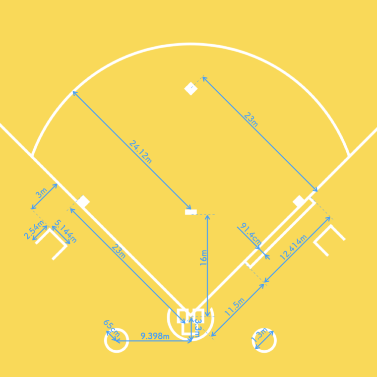 - 一塁側23m/三塁側23m/対角線32.527m