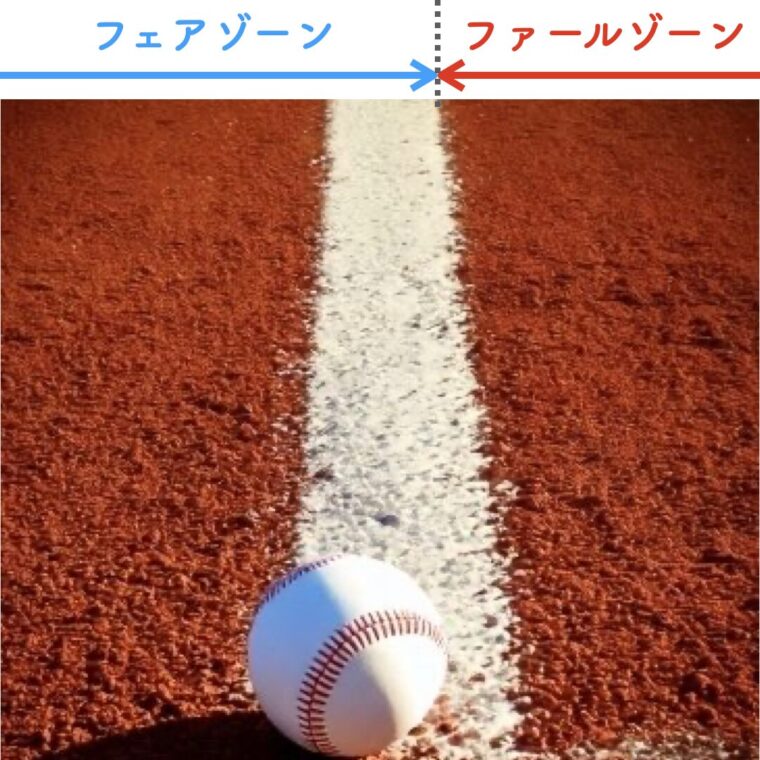 ファールラインそのものはフェアゾーンに含まれます。ちょうど白線の上に止まる打球は「フェアボール」です。