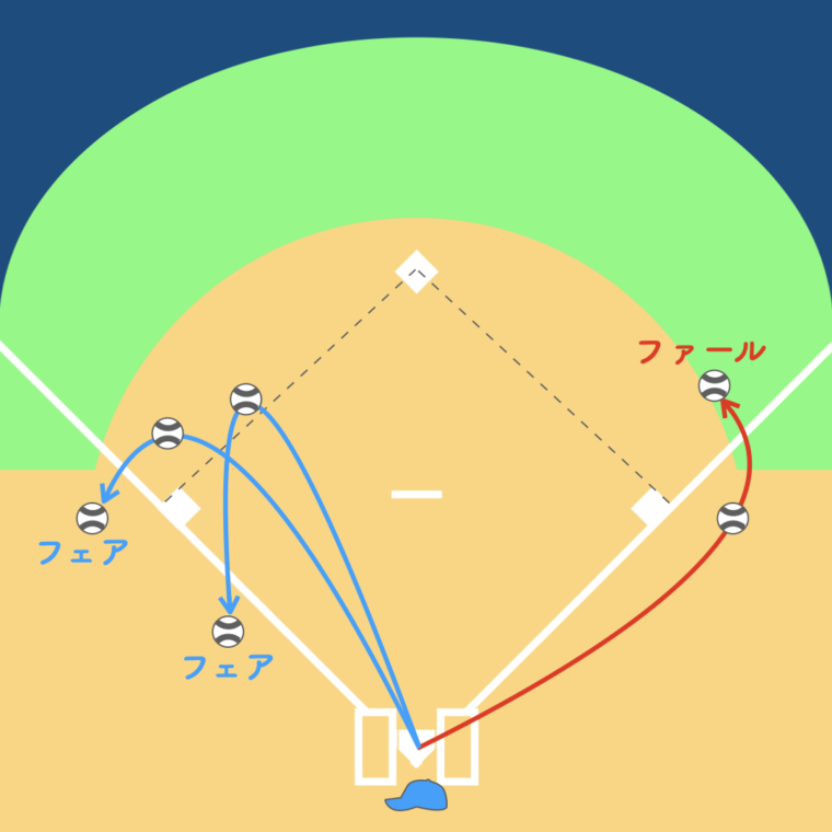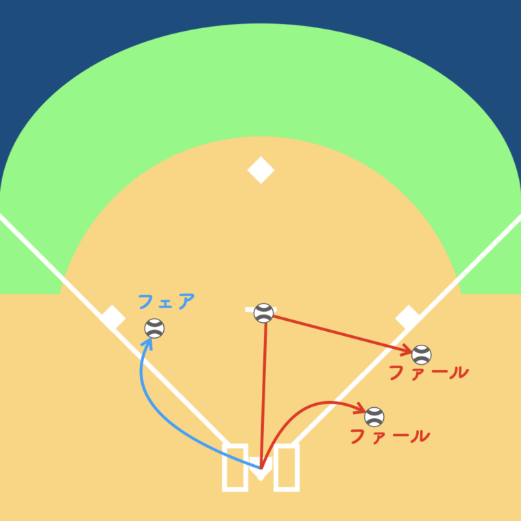 と伝えると、フェアとファールの基本がスッと伝わるはずです。