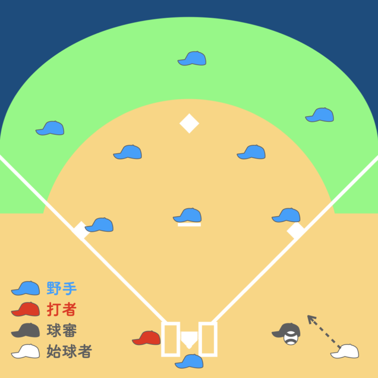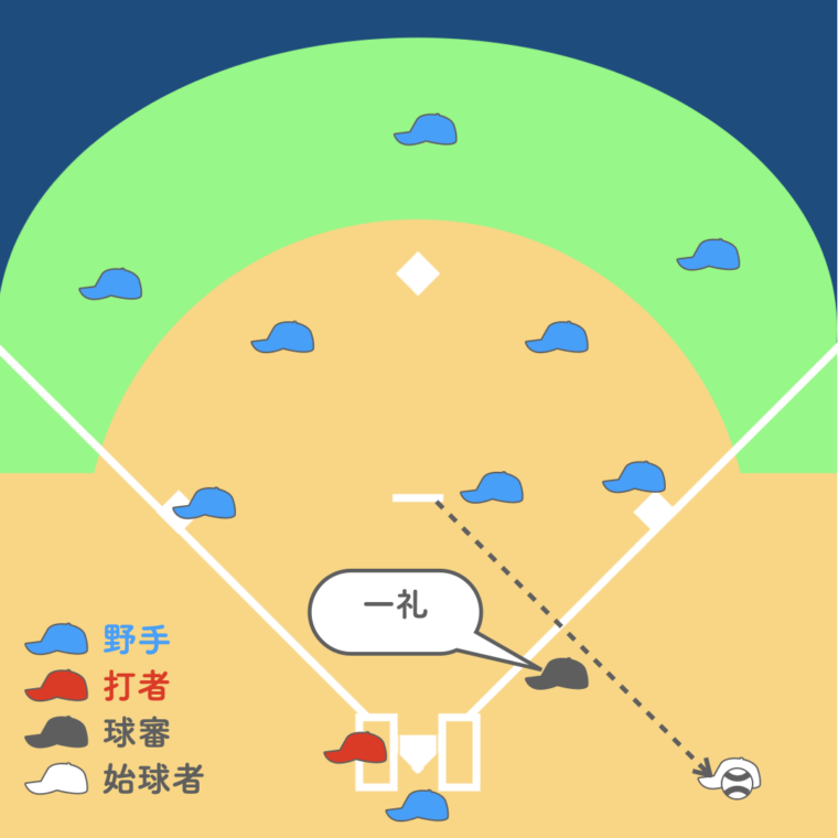 「プレー!」のコール後、始球者はキャッチャーめがけて投球します。このとき、たとえ投球がボールになってもバッターは空振りするのが、暗黙のルールです。