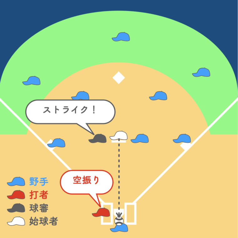 どんな球が来ても空振りしてもらえるよう、事前に打者にお願いしておきましょう。