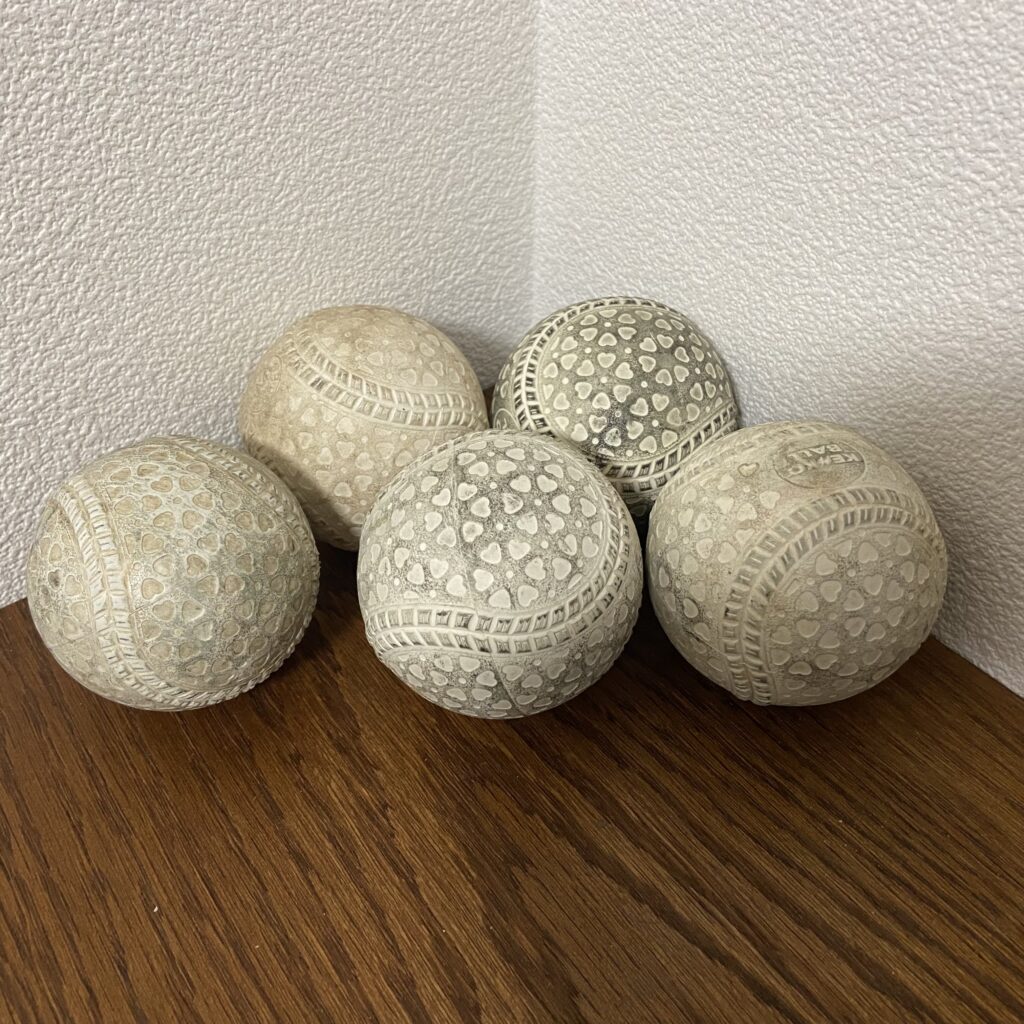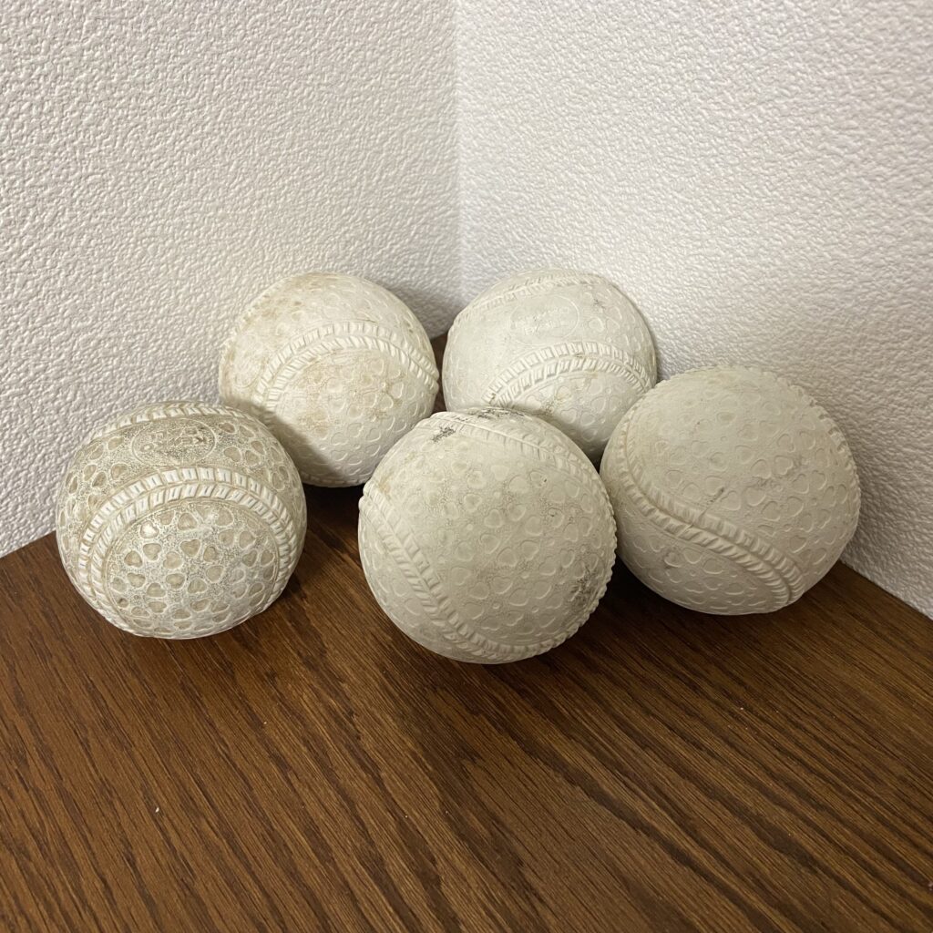 少年野球の練習で汚れた野球ボール。グラウンドの土やグローブの油などの汚れが付着しています。
